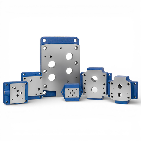 Поставляются плиты для распределителей по стандарту ISO4401 и для клапанов давления DB и DR и регуляторов потока 2FRM и 2FRE по стандартам ISO6264 и ISO5781, ISO6263.