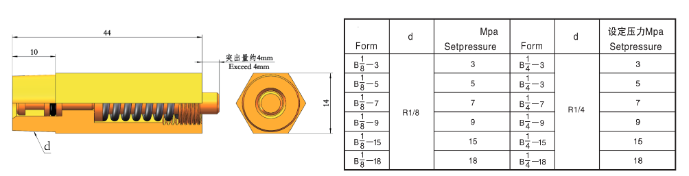 Устанавливается на выходе смазки каждого питателя в местах с неблагоприятными условиями эксплуатации и склонных к засорению, когда точка смазывания или трубопровод забиваются, а давление ненормально повышается и превышает заданное значение, смазка, подаваемая через закупоренное отверстие питателя, идет через переливное отверстие. Данный индикатор подходит только для непрерывной работы и не должен влиять на работу других питателей.