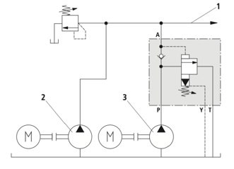 Ниже подробнее приведено описание конструкции клапана DA (DAW) и даны гидросхемы с примерами применения.