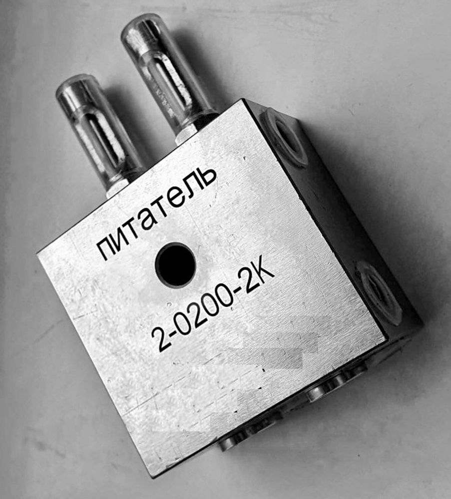 Питатель модульного исполнения 2-0200-1K с номинальной подачей смазки в один отвод 0,5-2 см3/ход с 1 выходом климатического исполнения УХЛ, категории размещения 4, применяется в двухлинейной централизованной системе смазки номинального давления 200 бар. Питатель 2-0200-1K работает как со смазочными маслами вязкостью от 68 сСт, так и с густыми смазками с классом NLGI 0 - 2. Питатель 2-0200-1K с регулятором и индикатором имеет максимальную дозу подачи до 2 мл за цикл и количество выходов равное 1. Питатель 2-0200-1K производится на заводе в Китае, который является партнером компании Гидроответ и специализируется на двухлинейных системах смазки; является полным конструктивным аналогом питателей Елгавского машиностроительного завода. Принцип работы питателя 2-0200-1K - смазка подается при прямом и обратном ходах поршня в один и тот же отвод. Питатели двухмагистральные централизованных смазочных систем модели 2-0200-1K предназначены для периодической подачи дозированных порций очищенных пластичных смазочных материалов с числом пенетрации не ниже 260 при температуре 25°С, к трущимся поверхностям при давлении в магистральных линиях до 20 МПа (200 кгс/см2).