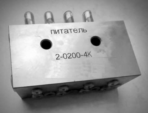 Питатель модульного исполнения 2-0200-4K с номинальной подачей смазки в один отвод 0,5-2 см3/ход с 4 выходами климатического исполнения УХЛ, категории размещения 4, применяется в двухлинейной централизованной системе смазки номинального давления 200 бар. Питатель 2-0200-4K работает как со смазочными маслами вязкостью от 68 сСт, так и с густыми смазками с классом NLGI 0 - 2. Питатель 2-0200-4K с регулятором и индикатором имеет максимальную дозу подачи до 2 мл за цикл и количество выходов равное 4. Питатель 2-0200-4K производится на заводе в Китае (прямом партнере компании Гидроответ) , который специализируется на двухлинейных системах смазки и является полным конструктивным аналогом питателей Елгавского машиностроительного завода. Принцип работы питателя 2-0200-4K - смазка подается при прямом и обратном ходах поршня в один и тот же отвод. Питатели двухмагистральные централизованных смазочных систем модели 2-0200-4K предназначены для периодической подачи дозированных порций очищенных пластичных смазочных материалов с числом пенетрации не ниже 260 при температуре 25°С, к трущимся поверхностям при давлении в магистральных линиях до 20 МПа (200 кгс/см2).