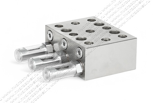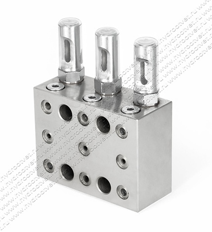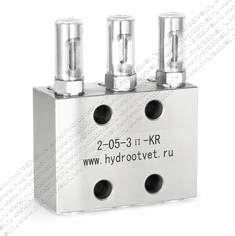 Питатель модульного исполнения 2-05-3П с номинальной подачей смазки в один отвод 5 см3/ход с 3 выходами климатического исполнения УХЛ, категории размещения 4, применяется в двухлинейной централизованной системе смазки номинального давления 200 бар. Питатель 2-05-3П работает как со смазочными маслами вязкостью от 68 сСт, так и с густыми смазками с классом NLGI 0 - 2. Питатель 2-05-3П с регулятором и индикатором имеет максимальную дозу подачи до 5 мл за цикл и количество выходов равное 3. Питатель 2-05-3П производится на заводе в Китае , который специализируется на двухлинейных системах смазки и является полным конструктивным аналогом питателей Елгавского машиностроительного завода. Принцип работы питателя 2-05-3П - смазка подается при прямом и обратном ходах поршня в один и тот же отвод. Питатели двухмагистральные централизованных смазочных систем модели 2-05-3П предназначены для периодической подачи дозированных порций очищенных пластичных смазочных материалов с числом пенетрации не ниже 260 при температруе 25°С, к трущимся поверхностям при давлении в магистральных линиях до 20 МПа (200 кгс/см2).