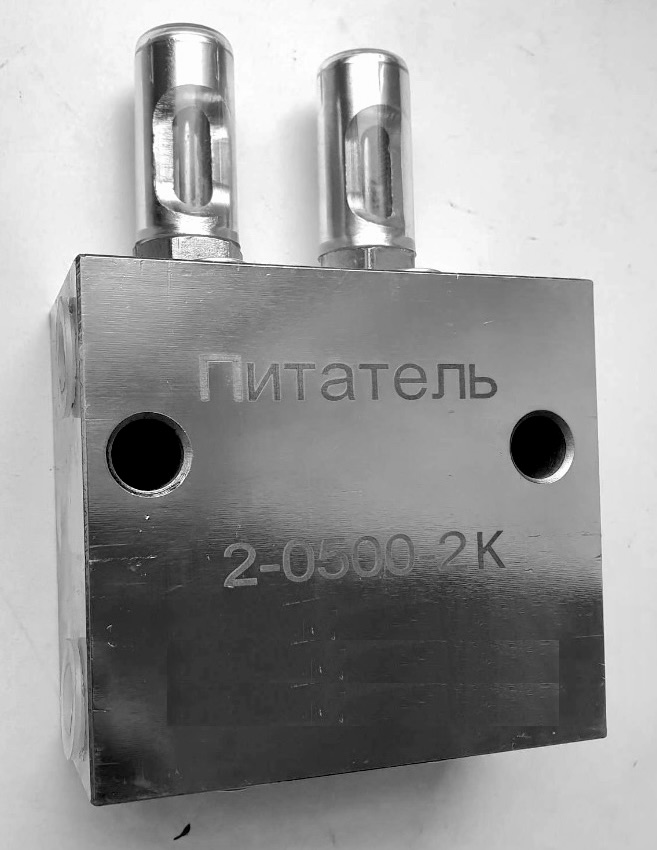 Питатель модульного исполнения 2-0500-2K с номинальной подачей смазки в один отвод 1,5-5 см3/ход с 2 выходами климатического исполнения УХЛ, категории размещения 4, применяется в двухлинейной централизованной системе смазки номинального давления 200 бар. Питатель 2-0500-2K работает как со смазочными маслами вязкостью от 68 сСт, так и с густыми смазками с классом NLGI 0 - 2. Питатель 2-0500-2K с регулятором и индикатором имеет максимальную дозу подачи до 5 мл за цикл и количество выходов равное 2. Питатель 2-0500-2K производится на заводе в Китае (прямом партнере компании Гидроответ) , который специализируется на двухлинейных системах смазки и является полным конструктивным аналогом питателей Елгавского машиностроительного завода. Принцип работы питателя 2-0500-2K - смазка подается при прямом и обратном ходах поршня в один и тот же отвод. Питатели двухмагистральные централизованных смазочных систем модели 2-0500-2K предназначены для периодической подачи дозированных порций очищенных пластичных смазочных материалов с числом пенетрации не ниже 260 при температуре 25°С, к трущимся поверхностям при давлении в магистральных линиях до 20 МПа (200 кгс/см2).