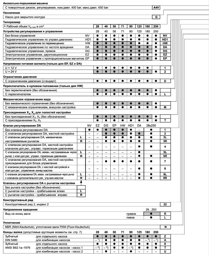 Насос гидравлический аксиально поршневой реверсивный регулируемый с наклонной планшайбой A4VG180HD3D1/32R-NZD02F691S-S с рабочим объемом 180 см3 и регулятором HD3D1 = Пропорциональный регулятор гидравлический с пилотным управлением, с отсечкой по давлению, с фильтром на входе Р, без клапана DA, максимальное давление до 450 бар, является надежной бюджетной альтернативой насосам немецкого производства Bosch Rexroth A4VG180HD3D1/32R-NZD02F691S-S артикул R902197656. Гидронасос A4VG180HD3D1/32R-NZD02F691S-S применяется в мобильной гидравлики в замкнутых контурах. Гидронасос имеет вал - Z = шлицевой DIN 5480, направление вращение правое, присоединительный фланец по D = SAE J744 (4 отверстия), уплотнения из N = NBR, каналы напорный и всасывающий - 02 = SAE, напор A и B - сверху и снизу, всас - S снизу, проходной вал - 69. Насосы A4VG180HD3D1/32R-NZD02F691S-S производятся в Китае на ведущем заводе-изготовителе гидромашин, с которым сотрудничает магазин Гидроответ, после выпуска насосы в обязательном порядке проходят выходные испытания на стенде, что позволяет обеспечить гарантию работоспособности.