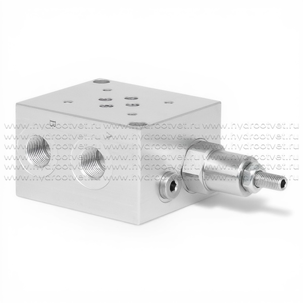 Плита стальная напорная BS3-C2 имеет в своем составе предохранительный клапан и предназначена для установки на нее сверху модульных клапанов и распределителей по стандарту CETOP03. Трубный монтаж плиты BS3-C2 реализован отверстиями Р, T, A и B с внутренней резьбой G3/8 и портом для подключения манометра или конрольной точки G1/4". Диапазон регулировки давления в гидросистеме от 20 до 210 бар. Максимальный расход для плиты BS3-C-2 составляет 40 л/мин.
