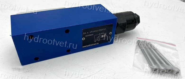Клапан отключения давления DA6VP2A5X/350FSM типоразмера Ду6 с давлением настройки до 350 бар и регулируемым диапазоном срабатывания применяется в гидросистемах с гидроаккумуляторами. Клапаны типа DA6VP2A5X/350FSM осуществляют подачу рабочей жидкости из насоса в систему гидроаккумулятора до тех пор, пока гидроаккумулятор не наполнится, а давление не достигнет заданного значения. У гидроклапана давления DA6VP2A5X/350FSM регулирующая рукоятка расположена со стороны А, в подвод от насоса заводится в канал P
