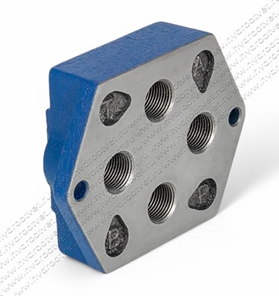 Монтажная плита G342/01 служит для притычного монтажа гидроаппаратуры типоразмера Ду6, например, гидрораспределителя 4WE6. Выходные каналы направлены вниз и имеют резьбу G3/8″. Материал - углеродистая сталь, максимальное рабочее давление - 350 бар, стандарт монтажа - ISO 4401-03 / CETOP03.