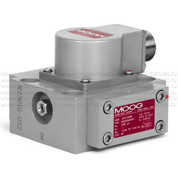 Сервоклапан G761, в частности модель G761-3001B H04JOFM4VPL, имеет в своей конструкции электромеханический преобразователь, каскад управления типа "сопло-заслонка", золотниковую пару и корпус.