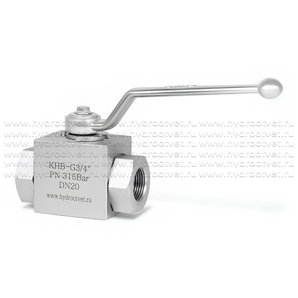 Шаровой кран на высокое давление KHB-G3/4-1111-01-1 типоразмера Ду20 с внутренней резьбой G3/4, двухлинейный двухпозиционный предназначен для установки непосредственно в трубопровод при помощи резьбы. Шаровой кран KHB-G3/4-1111-01-1 запирает поток масла в одном направлении и пропускает в другом. Шаровой кран 2/2 переключается рукояткой. Шаровой кран KHB-G3/4-1111-01-1 выполнен из стали и имеет серебряно-цинковое покрытие. Материал уплотнения шара = POM. Краны KHB-G3/4-1111-01-1 производятся в Китае на ведущем заводе-изготовителе гидроаппаратуры, с которым сотрудничает магазин Гидроответ, и являются качественными аналогами одноименного клапана известного немецкого бренда.