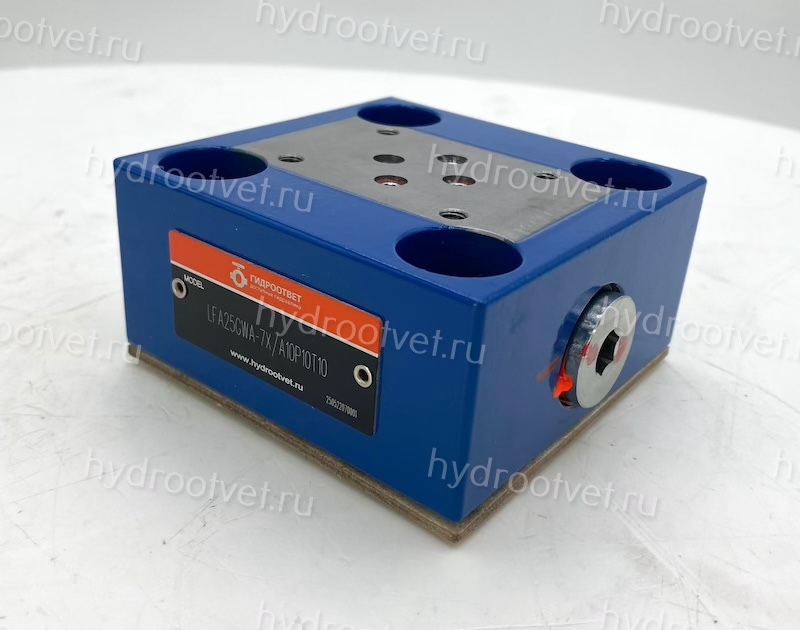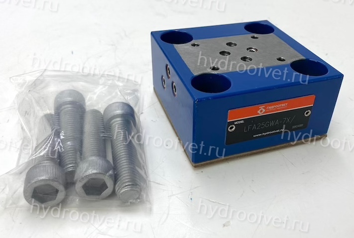 Клапан LFA25GWA-7X/ выполнен в виде крышки для картриджа типоразмера Ду25 для установки на гидроблок по стандарту DIN ISO 7368. Гидроклапан LFA25GWA-7X/ служит для реализации функции управления потоком для больших величин расходов, то есть выполняет функции обратного клапан или гидрозамка, распределителя в совокупности со вставкой размера Ду25. Крышка логического элемента LFA25GWA-7X/ имеет тип GWA = крышка со встроенным клапаном "ИЛИ" под установку распределителя Ду6, три выхода X, Z1 и Y, уплотнительные кольца выполнены из материала NBR, внешний канал X - нет. Клапаны LFA25GWA-7X/ производятся в Китае на ведущем заводе-изготовителе гидроаппаратуры, с которым сотрудничает магазин Гидроответ, и являются качественными аналогами одноименного клапана известного немецкого бренда.