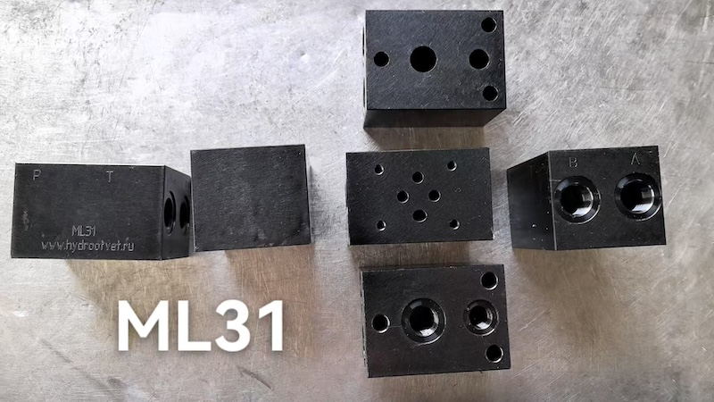 Гидравлическая плита стальная ML31-ST предназначена для модульного монтажа гидроклапанов ду 6 (cetop03). Плита стальная ML31-ST может быть использована как одноместная присоединительная плита стальная, для наращивания башни (сэндвича) для модульного монтажа, а также в качестве крышки сэндвича с выходом под манометр. Максимальное давление 350 бар. Максимальный расход 40 л/мин. Материал - сталь. Выходы А и В - 3/8" BSP, P = 1/4" BSP, T = 3/8" BSP. Плита стальная ML31-ST устанавливается как правило на базовую плиту с предохранительным клапаном VMP-DBD-ST и позволяет реализовать батарейный монтаж гидравлических клапанов типоразмера DN6 и для гидрораспределителей CETOP 03 Ду = 6 мм (ГРЭ6; 4WE6; 1РЕ6; ВЕ6 и т.п.), что применяется при создании гидравлических схем. Плиты ML31-ST могут быть непосредственно применены на насосных станциях, либо на других секциях оборудования. Уплотнительные кольца, металлические резьбовые заглушки, крепёжные винты в комплект поставки не включены - данные позиции являются стандартными и заказываются у соответствующих профилирующих организаций. 3D модель плиты предоставляется по запросу. В стандартном исполнении серийная плита стальная имеет защиту поверхности фосфатированием.