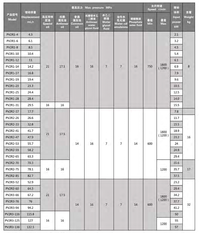 Насос PV2R3-76RA является надежными и качественным аналогом насоса производства Викерс (Vickers, ныне Eaton или Danfoss) серии PV2R3 Насосы PV2R3-76RA - это пластинчатые насосы постоянной производительности с рабочим объемом см3, предназначенные для работы в гидросистемах станков, термопластавтоматов, автоматических линий с давлением до 21 МПа.Насосы модели PV2R3-76RA являются пластинчатыми насосами постоянной производительности. Насосы PV2R3-76RA имеют высокий КПД, малый уровень шума и могут работать при высоком давлении. Благодаря высокоточному оборудованию, которое применяется при изготовлении данных насосов, конструкция насосов PV2R3-76RA обладает высокой надежностью и имеет ультра низкий уровень пульсации давления на выходе