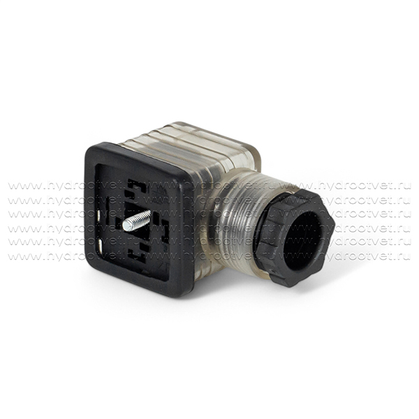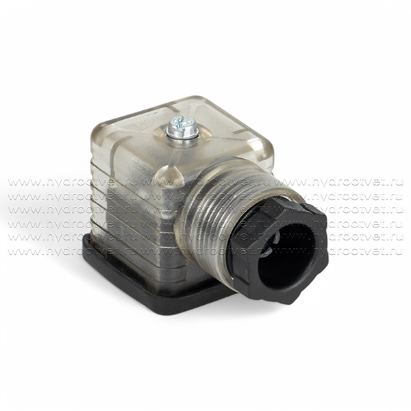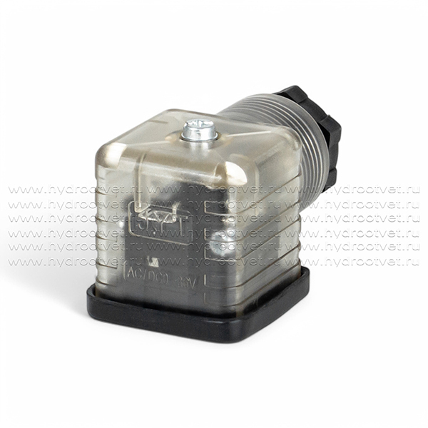 Штепсель Plug №1 DC представляет собой штекер Z5L для электроразъема электромагнита гидравлического клапана, с индикацией, корпус прозрачный, без кабеля, по стандарту DIN 43650 ISO 4400, для постоянного тока макс.24В