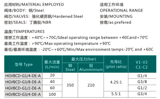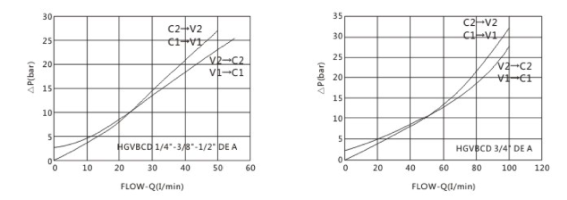 Клапаны VBCD-G1/2-DE-A имеют трубный монтаж с резьбой G1/2 и устанавливаются непосредственно рядом с гидроцилиндром или гидромотором. Контрбалансные клапаны VBCD-G1/2-DE-A служат для организации гидравлического подпора при наличии попутной нагрузки на рабочий орган. Гидроцилиндр не будет вытягиваться или гидромотор не будет крутиться неконтролируемо, если есть вытягивающая сила, за счет применения данных клапанов VBCD-G1/2-DE-A. Но когда попутная нагрузка отсутствует, клапан не создает давление сопротивления. Соотношение площадей 4,25/1, материал корпуска - углеродистая сталь.