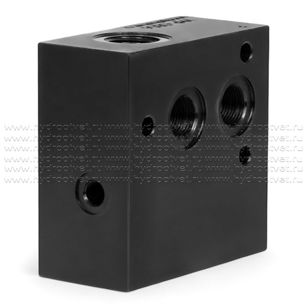 Плита стальная гидравлическая VMP-DBD предназначена для установки на крышку бака и служит для организации выходов Р (напорный канал) и Т (возвратный сливной канал) в гидросистеме из насосной маслостанции. В плиту VMP-DBD-ST должен быть установлен предохранительный клапан DBDS6, полный код которого определяет диапазон регулировки максимального давления в гидросистеме. Также плита стальная имеет дополнительный выход под манометр - это является ее одним из основных отличий от предшественника: плиты VMP-CR. Помимо реализации выходов Р и Т из станции, на плиту VMP-DBD можно устанавливать дополнительные плиты ML31-ST (кубики), что позволяет реализовать башенный монтаж гидроклапанов типоразмера Ду6 (CETOP 03). Каждая установленная дополнительно плита стальная ML31-ST - это одно место под сетоп 03. Уплотнительные кольца, металлические резьбовые заглушки, крепёжные винты в комплект поставки не включены - данные позиции являются стандартными и заказываются у соответствующих профилирующих организаций. В стандартном исполнении серийная плита стальная имеет защиту поверхности фосфатированием. 3D модель плиты предоставляется по запросу.